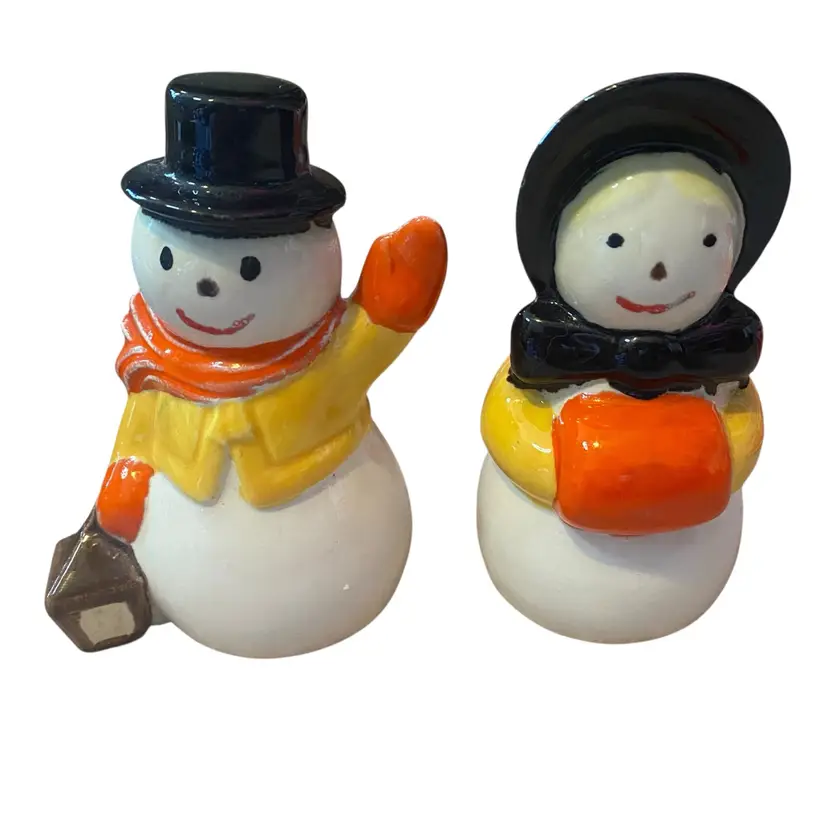 Vintage Mr. & Mrs Snowman Figures MCM Colors