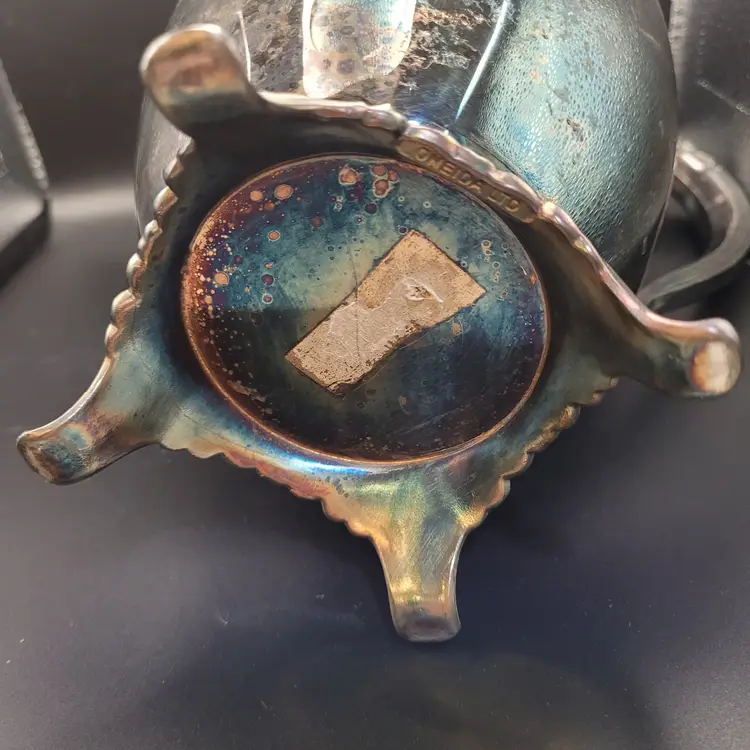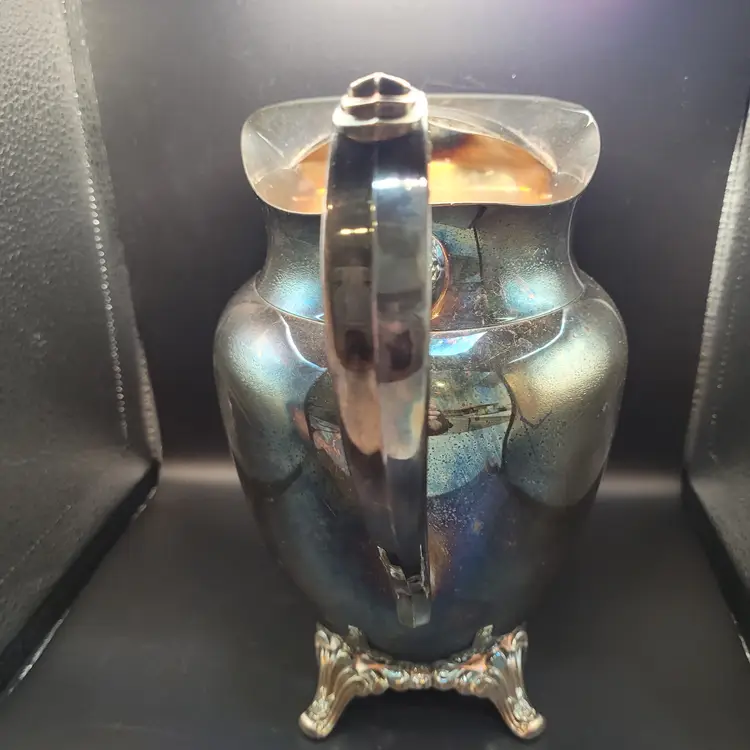 Vintage Oneida Silverplate Water Pitcher Footed Design W/Ice Lip USA