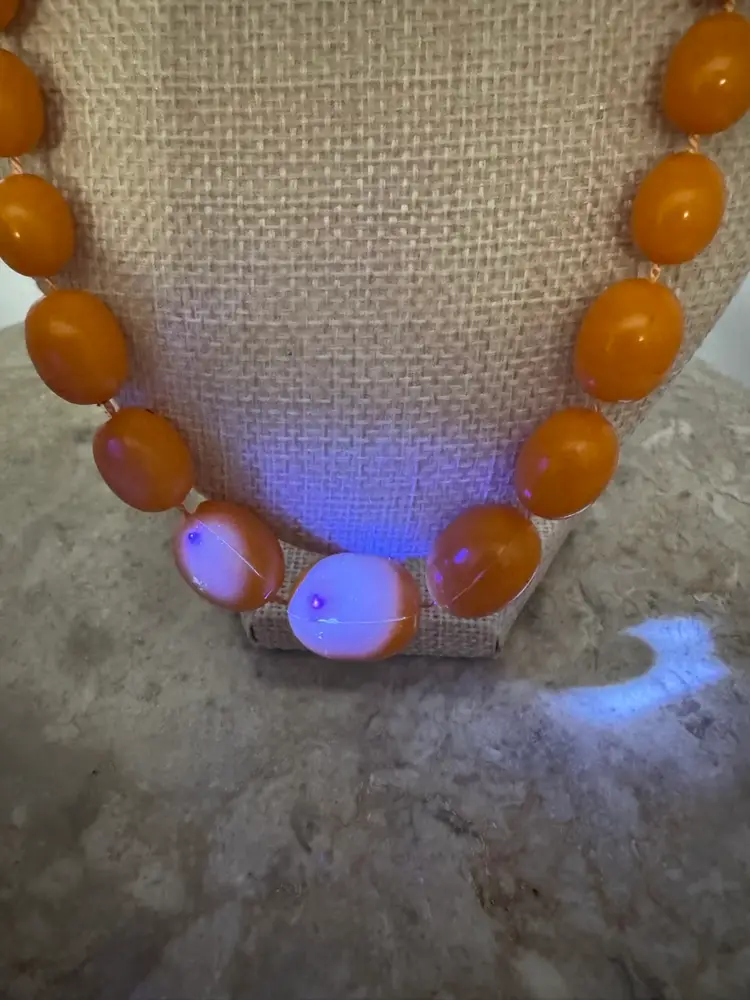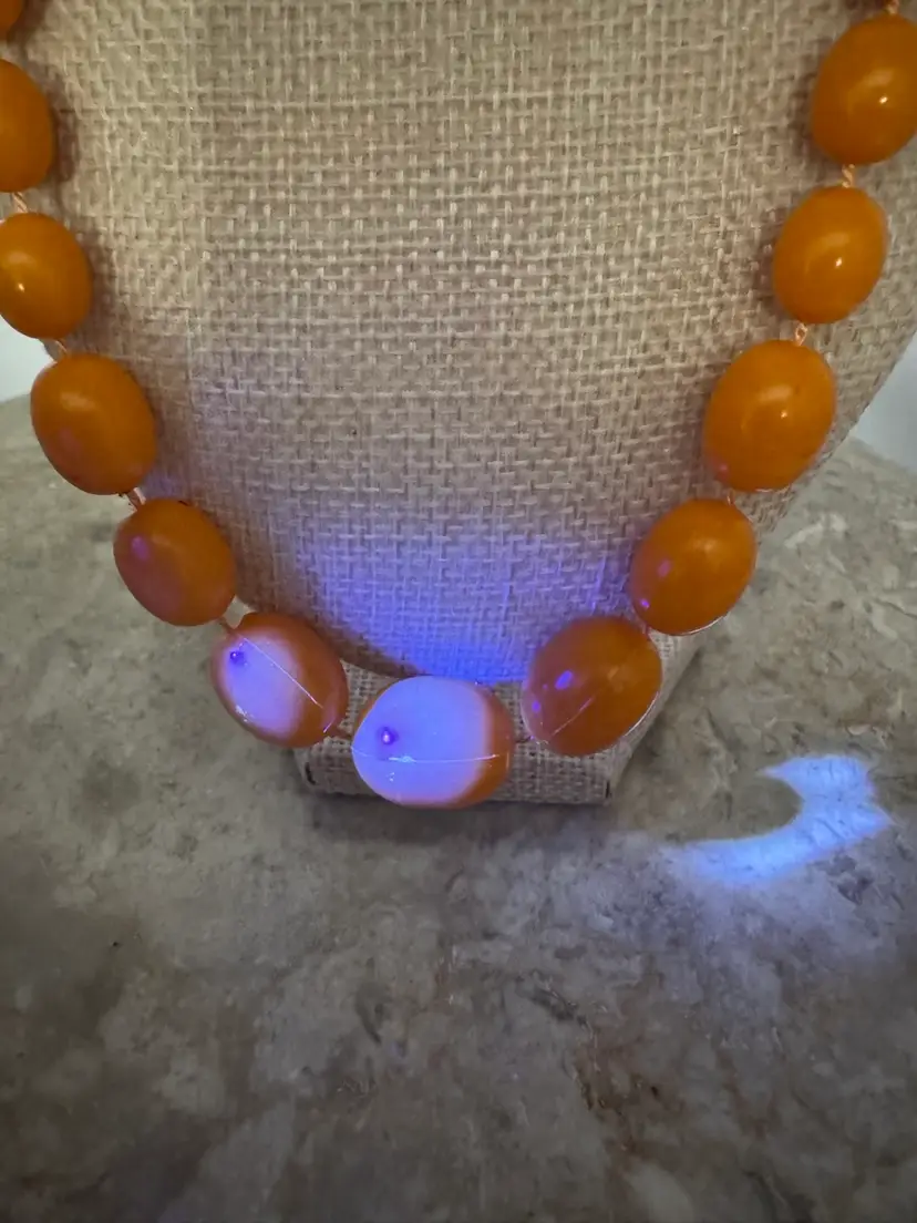 Vintage Orange Graduating Bead UV Glow Necklace. Fantastic color! Great vintage condition. Measures 22”