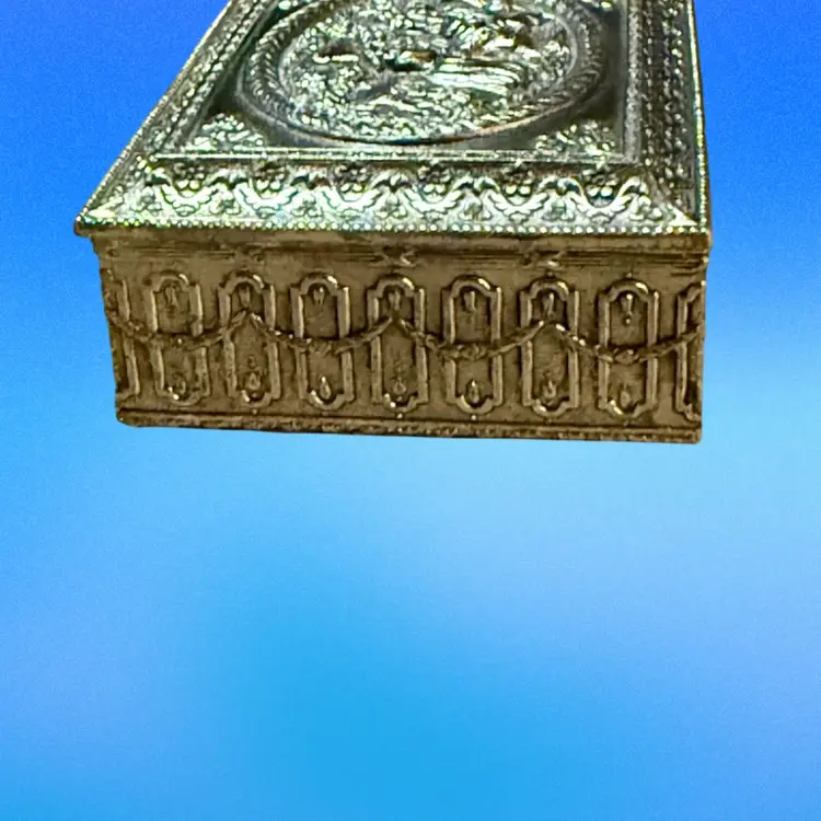 Approx 3.5” x 3” x 1.5”; marked Japan on bottom; good condition; no issues.