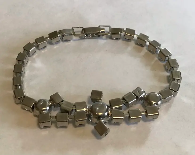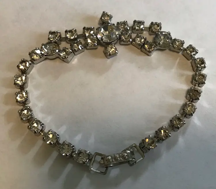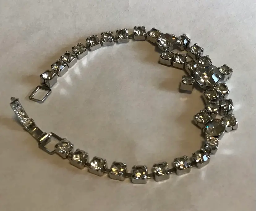 Prong set clear stones, 6-3/4” fold over clasp, cup link. #687