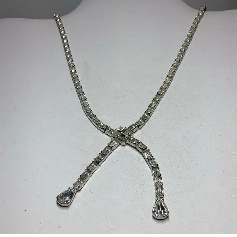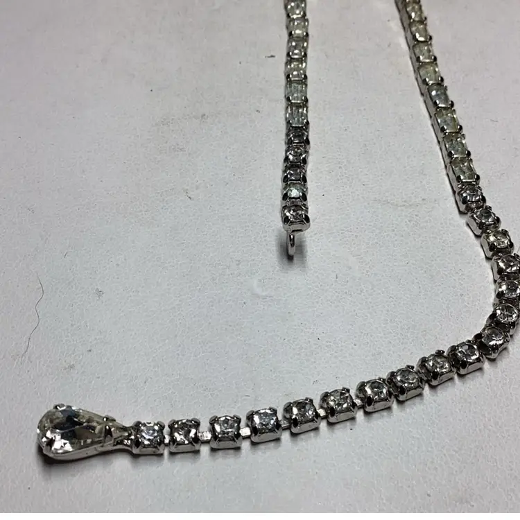 Vintage Rhinestone Necklace Baguette Crystals 16” - Great Condition