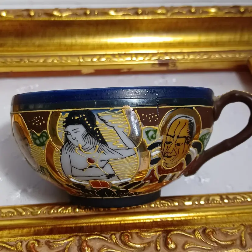 Explore the artistry of this vintage Satsuma moriage teacup, featuring intricate hand-painted designs and raised detailing. A perfect piece for collectors or as a unique display item. 6x4" great condition