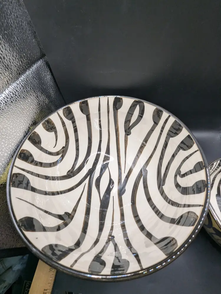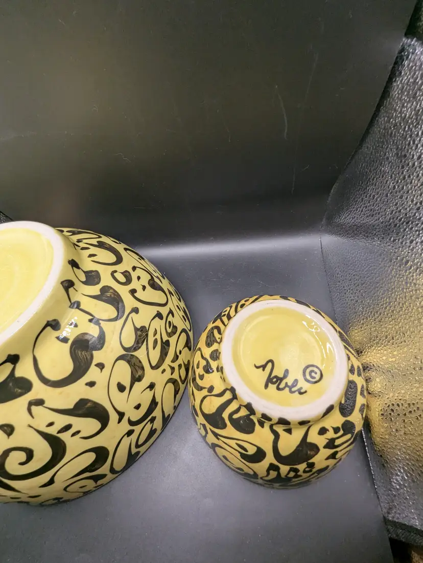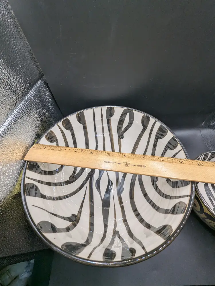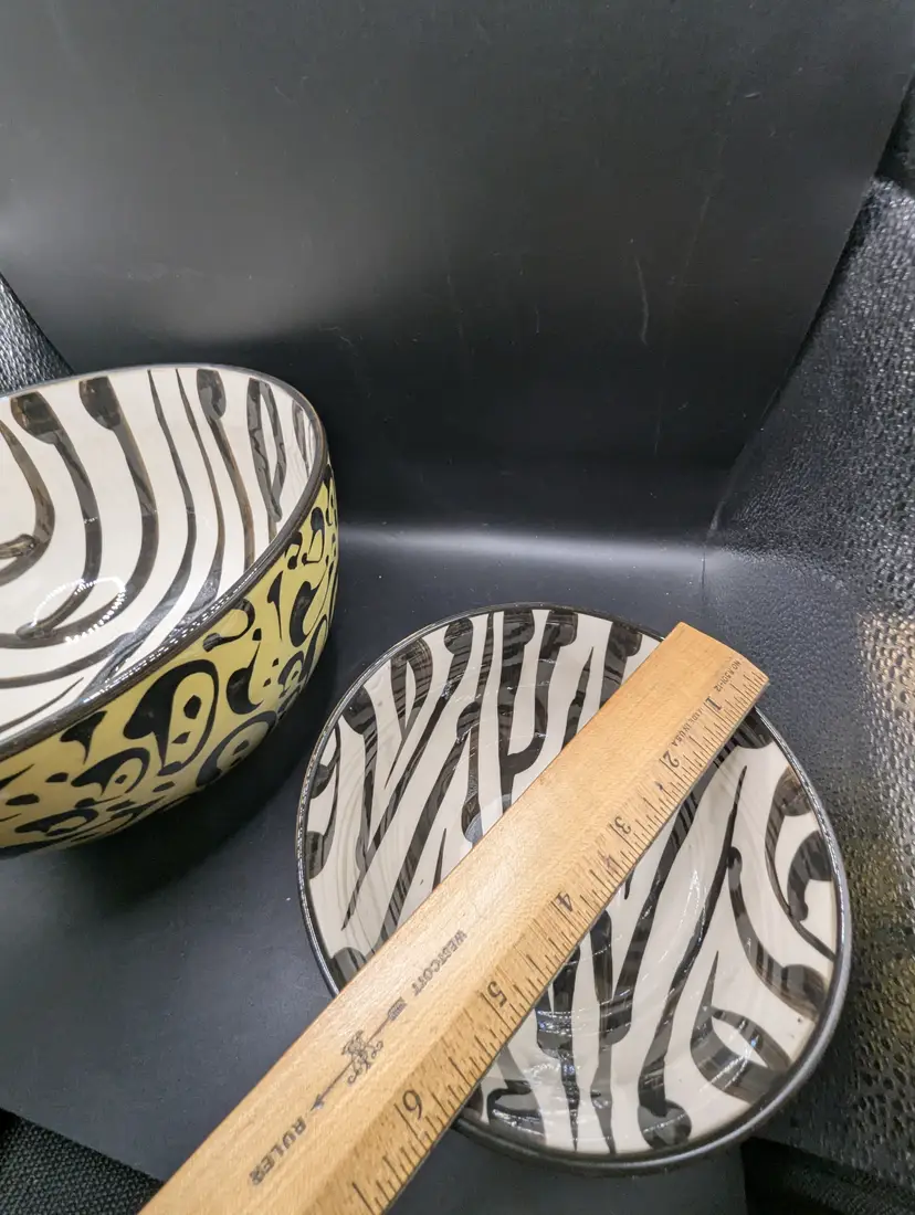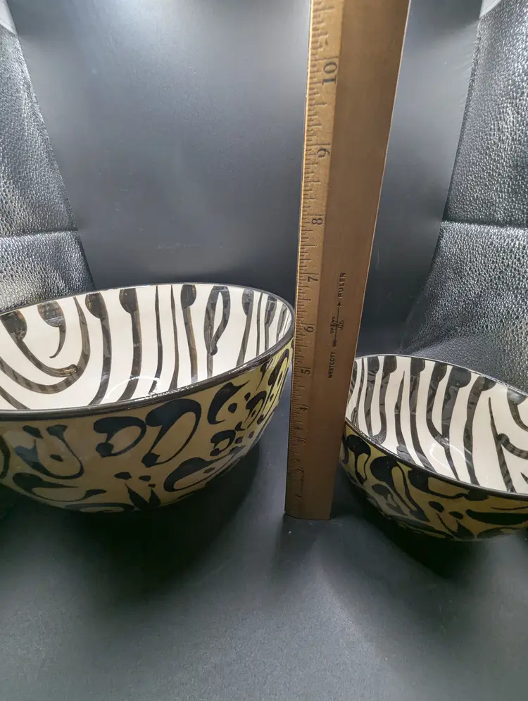 This is a lovely Vintage Set of 2 Evandale Porcelain Handpainted Tan/White/Black Stripe Mixing Bowls Signed Noble. No chips or cracks. Please see all pictures for condition and measurements.