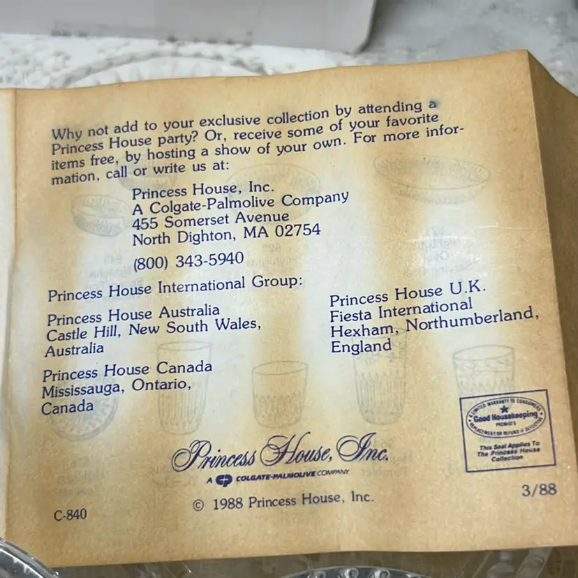 Vintage Set Of Princess House #876 Lead Crystal Coasters In Original Box And Has Original Booklet