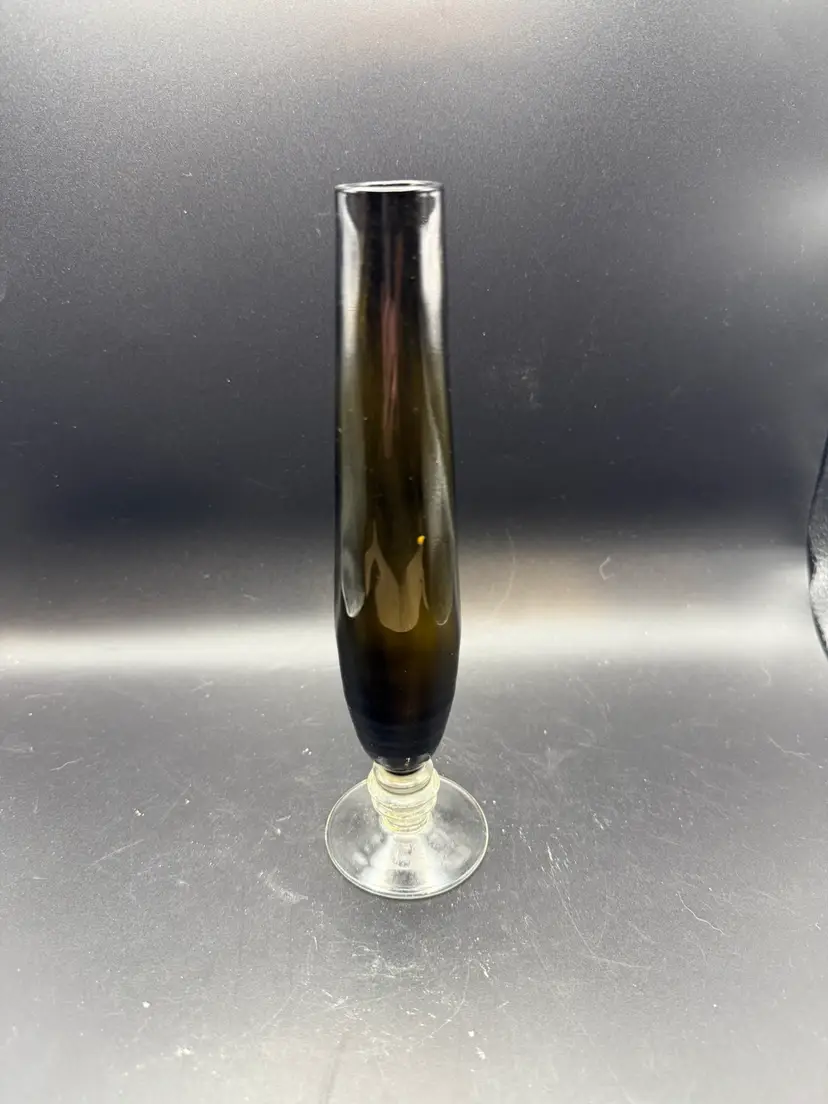 Blown glass Smokey brown glass bud vase. Stands 8 in high.