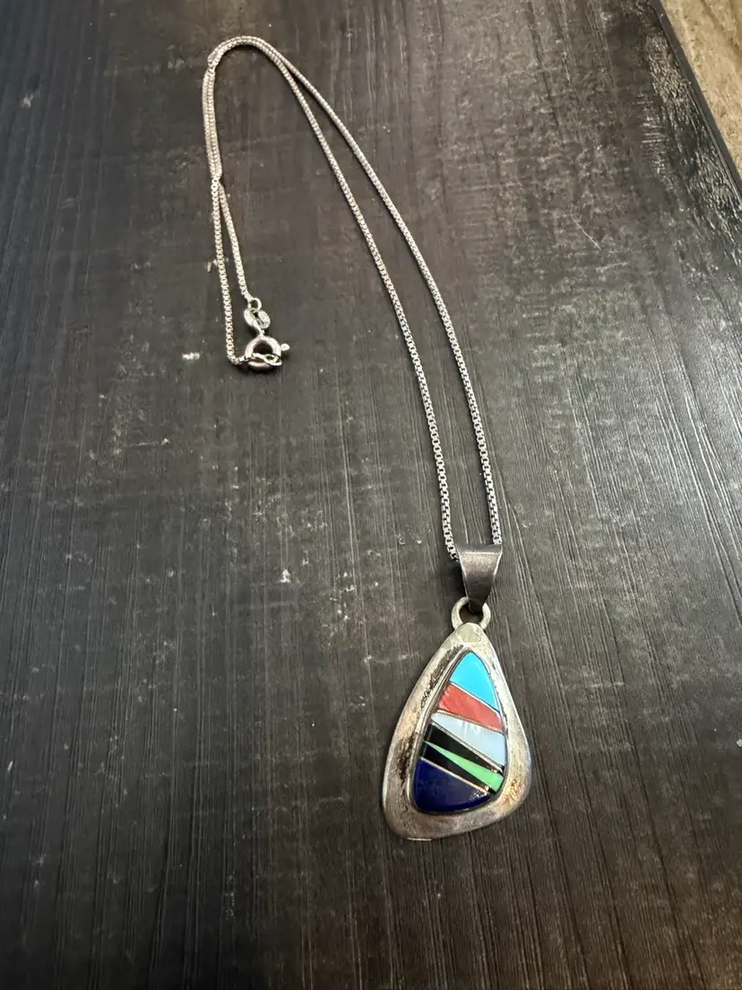 Vintage sterling silver inlay pendant necklace