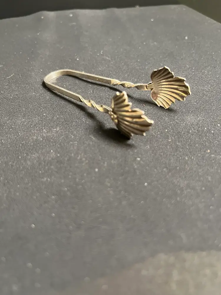 Vintage Sterling Silver Twisted Handle w/ Maple Leaves Sugar/Bon Bon Tongs