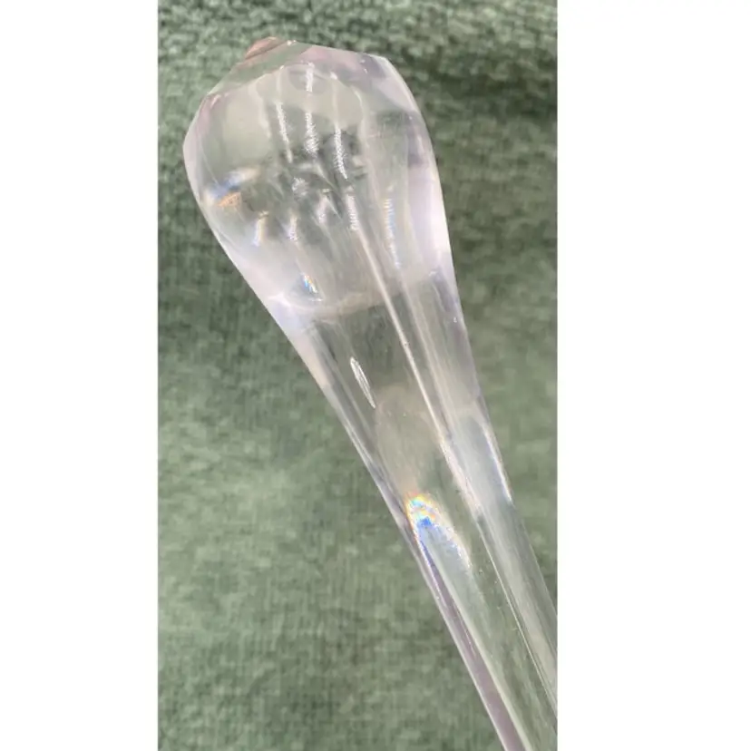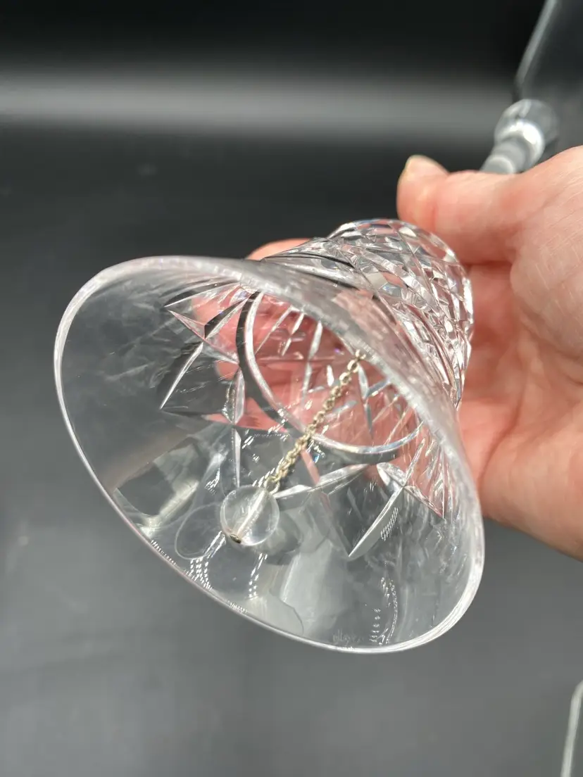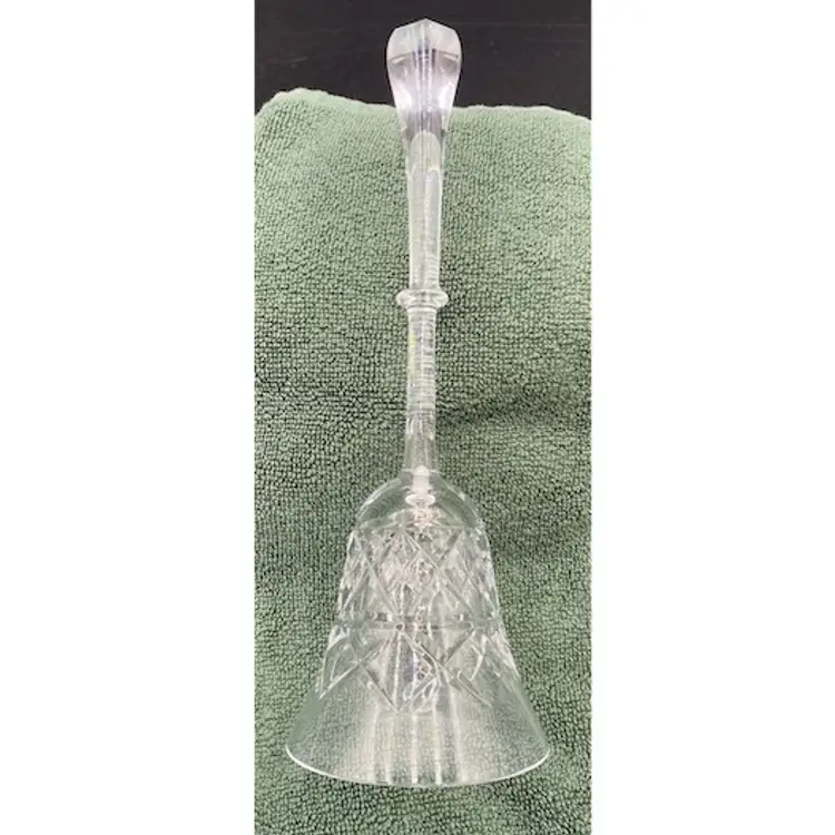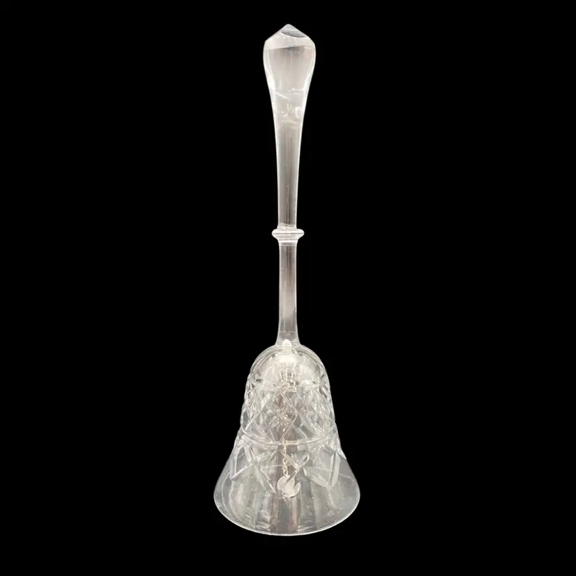 This vintage crystal bell is a stunning addition to any collection. The bell stands at 9 inches tall and 3 inches wide, with a weight of 7.1 ounces. The clear crystal material is elegantly etched with a diamond/cross-hatch pattern, adding a touch of sophistication to any space. The cut design and finish make this piece a standout addition to any home décor.