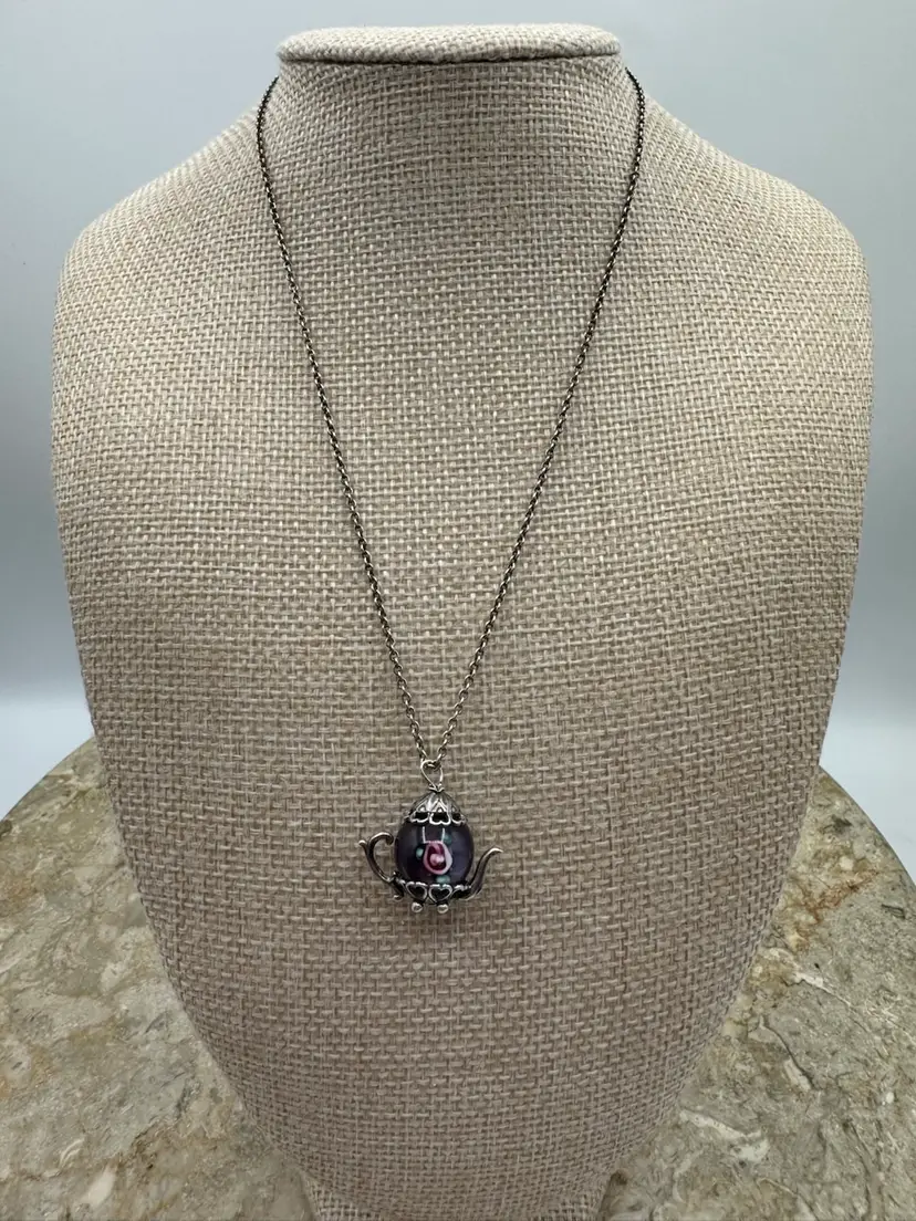 This is an amazing rare estate sale find. Vintage Tiffany & Co 925 Sterling Silver Marked Peretti Spain 16” Chain With Murano Glass Bead 925 Sterling Silver Tea Pot Charm. Excellent vintage condition. This is a must have!
