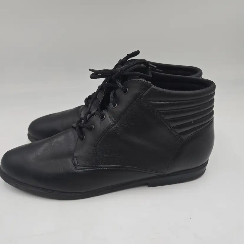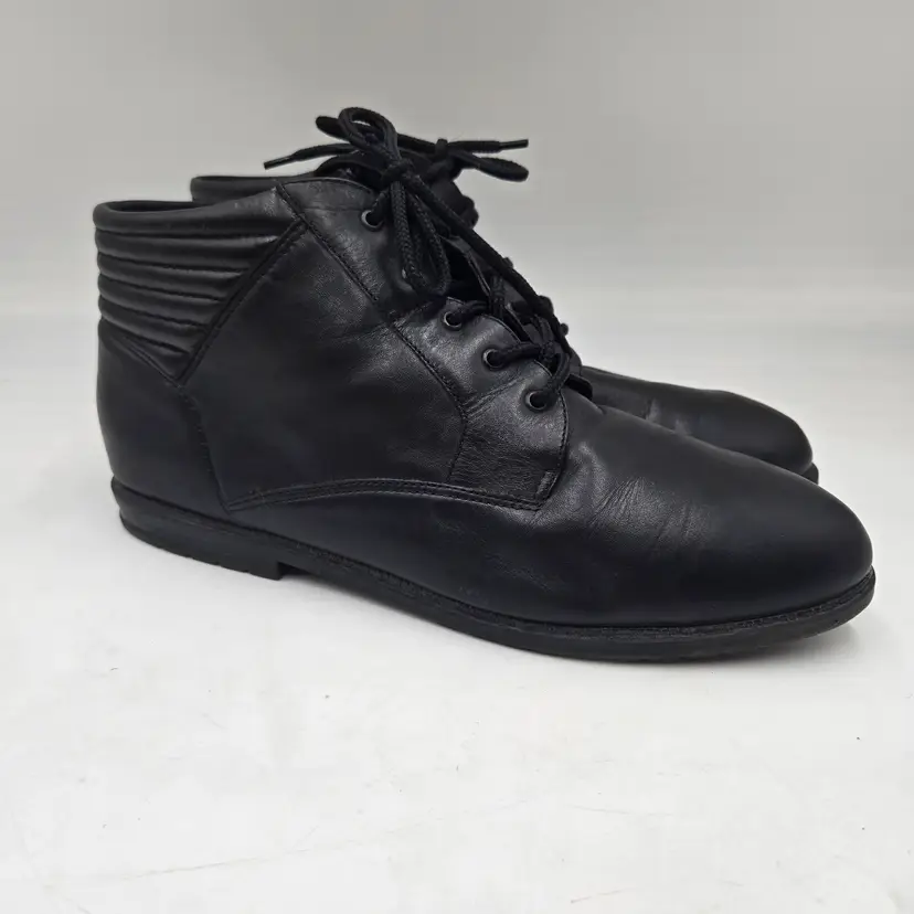 Vtg 90s Laura Scott Ankle Boots Black Leather Sz 9.5 M Lace Up Granny Whimsigoth