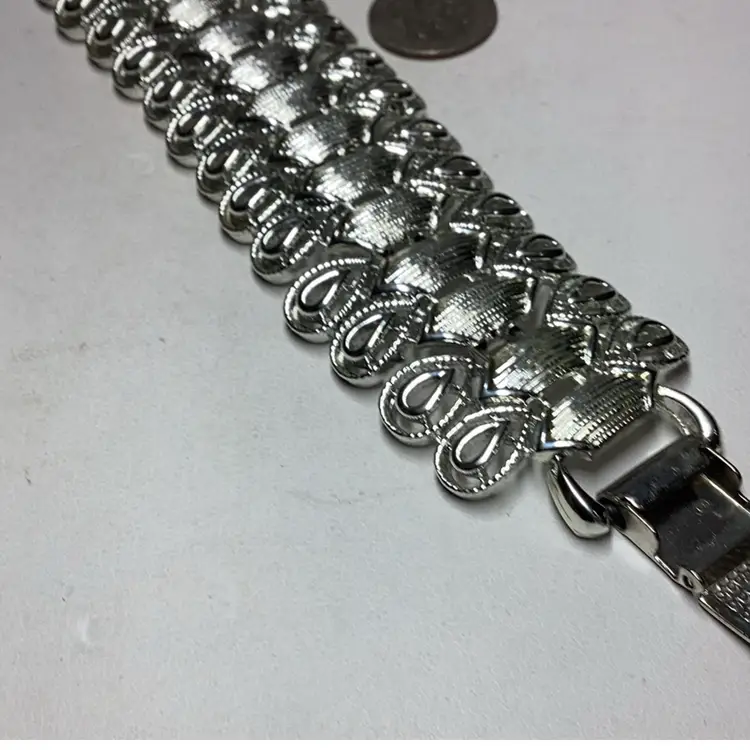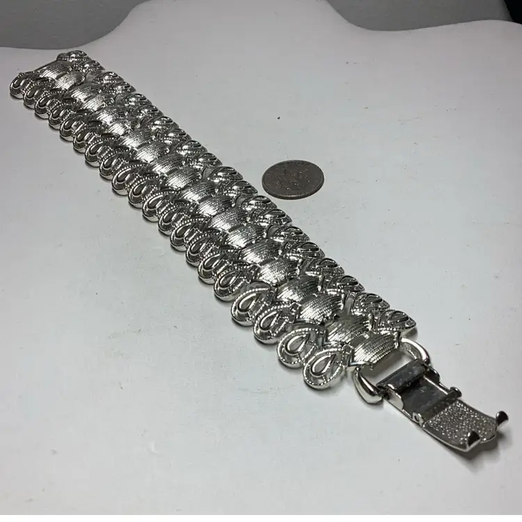 Wide 1” Silvertone Link Bracelet 7.5” - CORO Brand