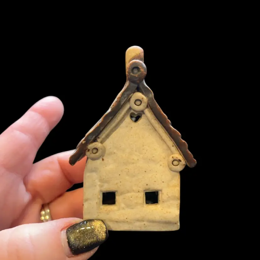Miniature Handmade Pottery house. Stamped windy meadows pottery. No chips or crack. Approx: 2.5”h x 2.25”w