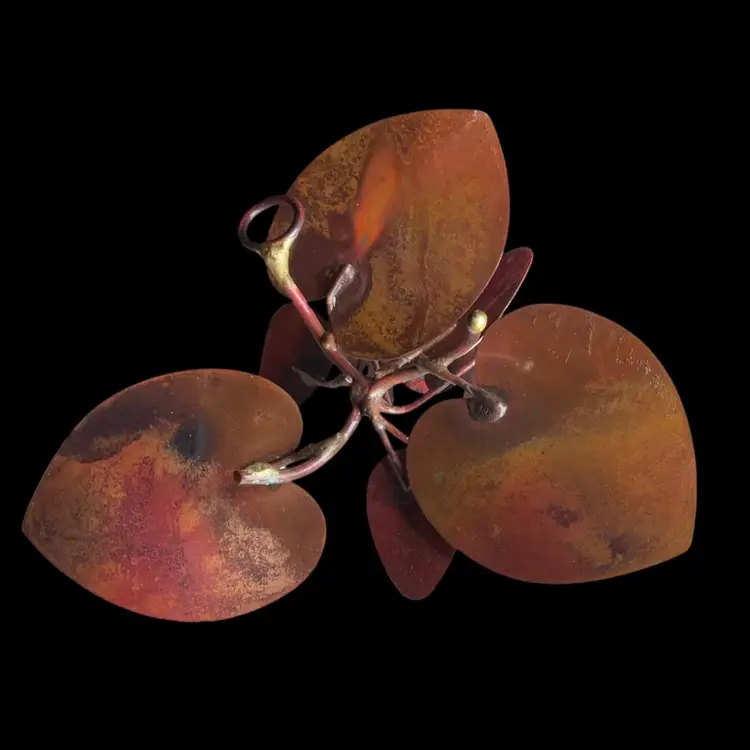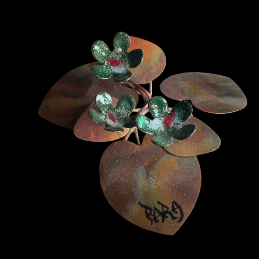 Z. Vintage Enamel, Copper Floral Wall Art Signed Mid-Century. 4.5โ€